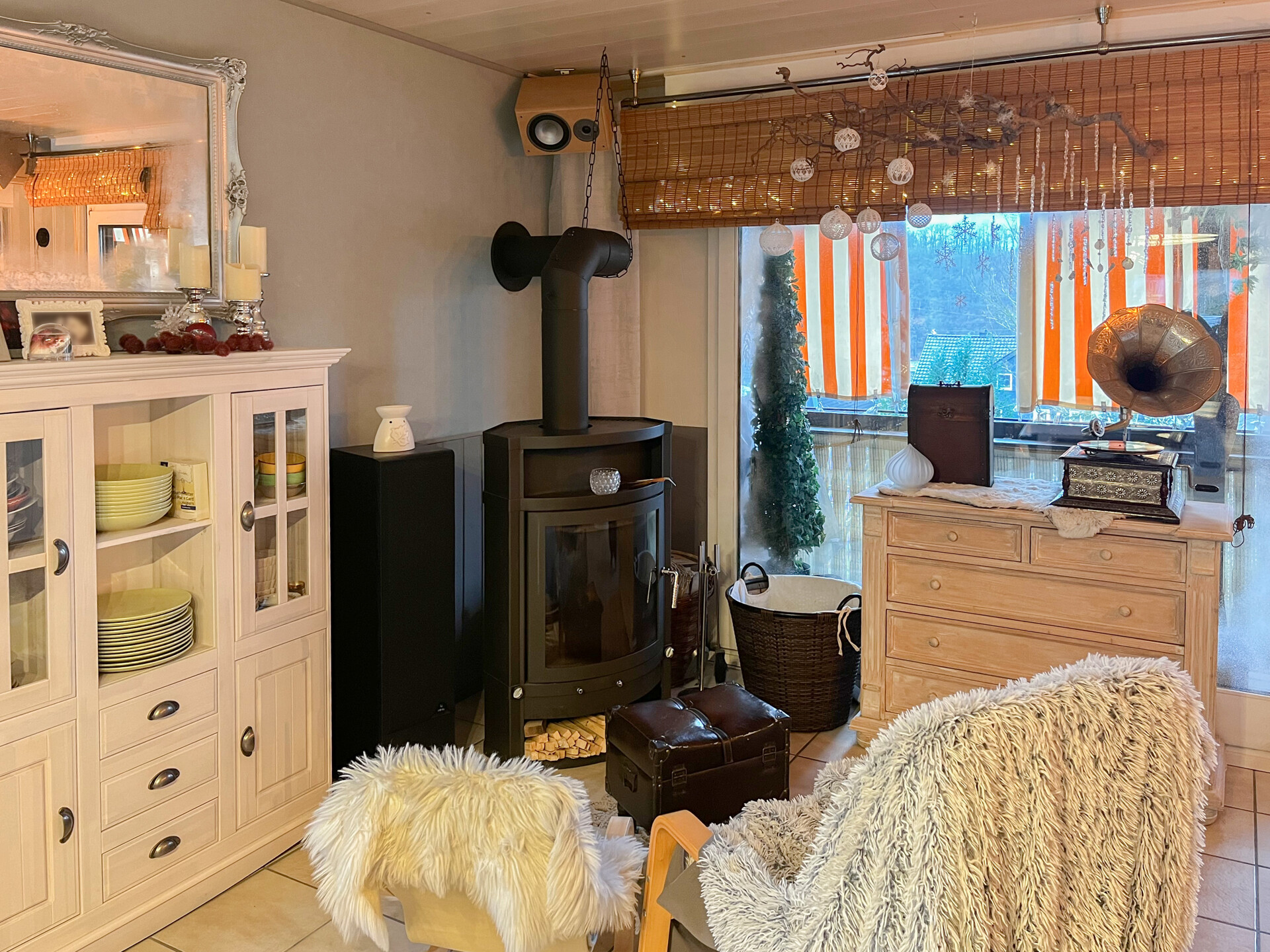Im Erdgeschoss erwartet Sie eine gut ausgestattete Einbauküche, die offen in den Essbereich übergeht – ideal für gesellige Stunden. Ein komfortables Bad und ein gemütliches Schlafzimmer ergänzen den Grundriss. Das Wohnzimmer mit Kamin schafft besonders im Winter eine warme Atmosphäre und bietet Zugang zum sonnigen Balkon.