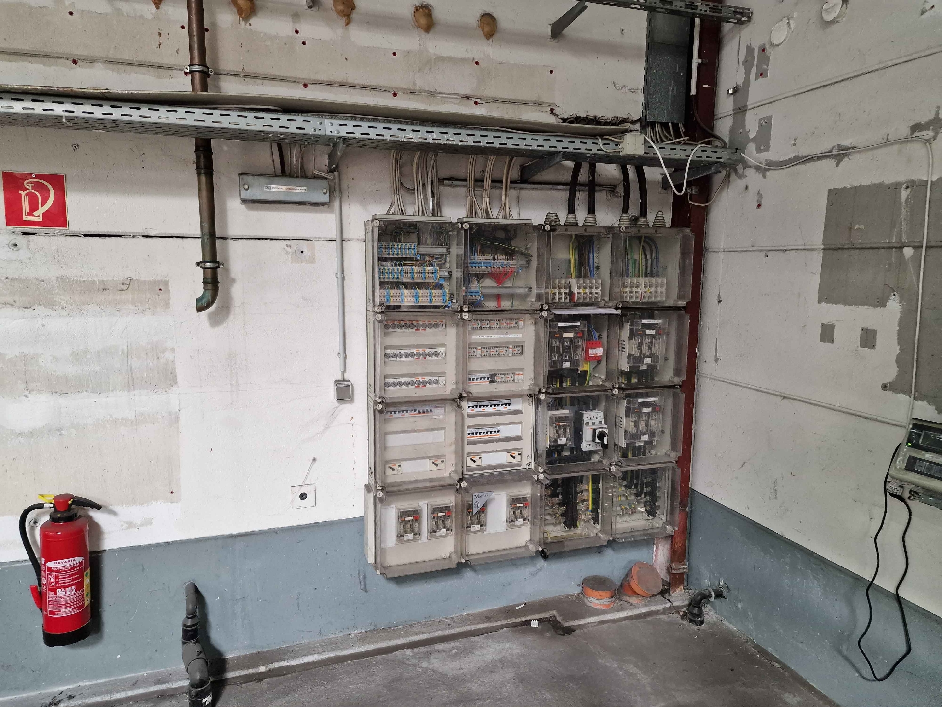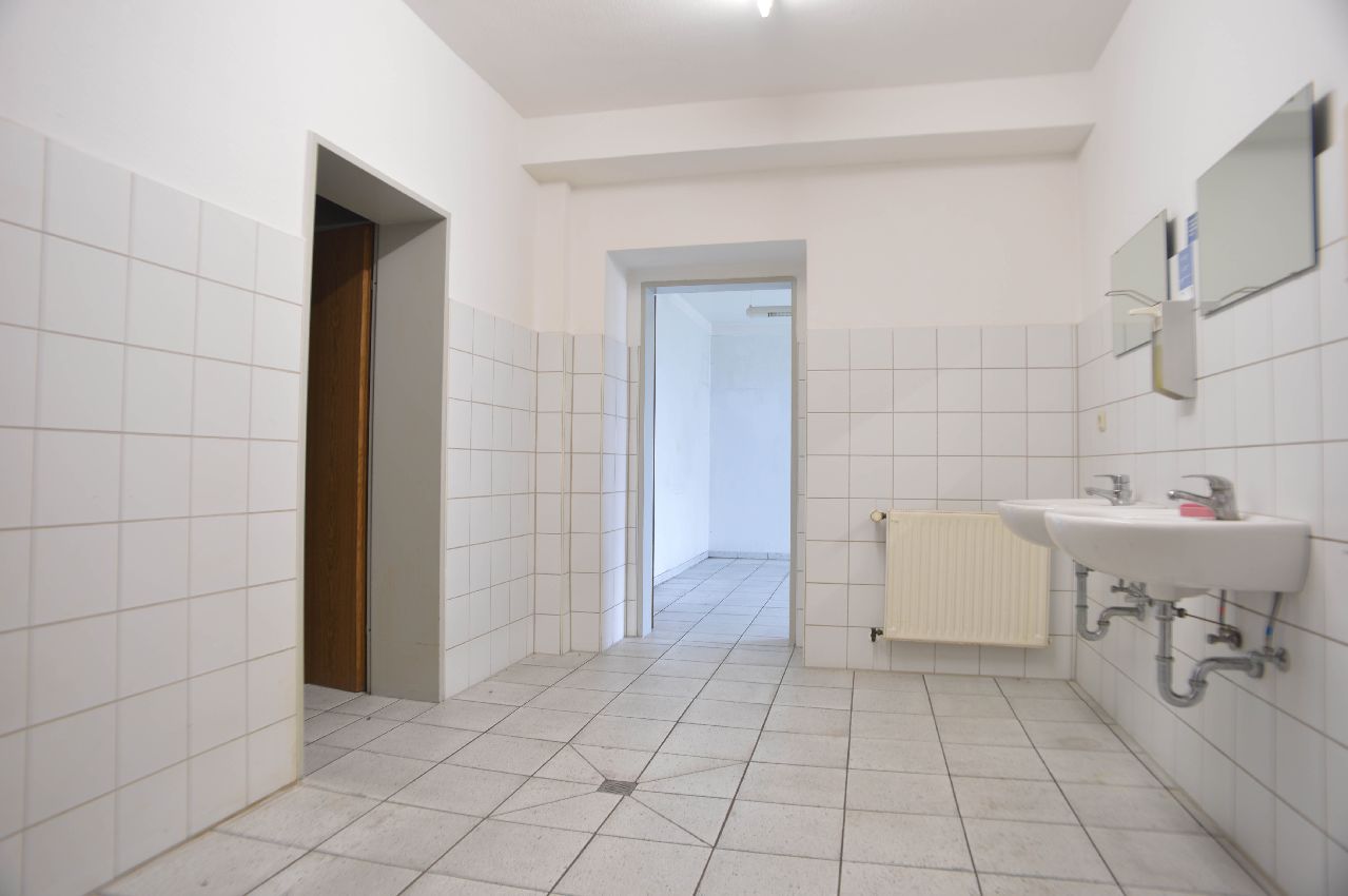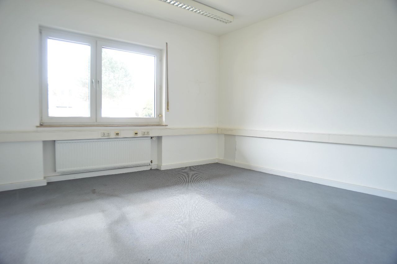 Angrenzend befinden sich die Büro- und Nebenflächen mit einer Größe von 418 m². Im Erdgeschoss befinden sich ausschließlich Büroräume. Durch einen Leitungswasserschaden werden diese zurzeit komplett renoviert.