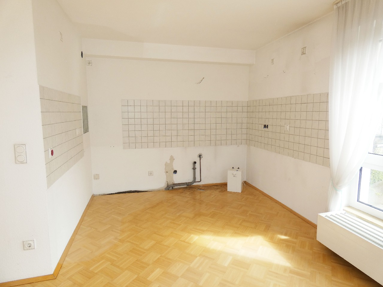 Zusätzlich zu den üblichen Renovierungsarbeiten sollten der Parkettboden sowie der Fliesenboden im Badezimmer aufgrund von Beschädigungen und Verfärbungen ausgetauscht werden.