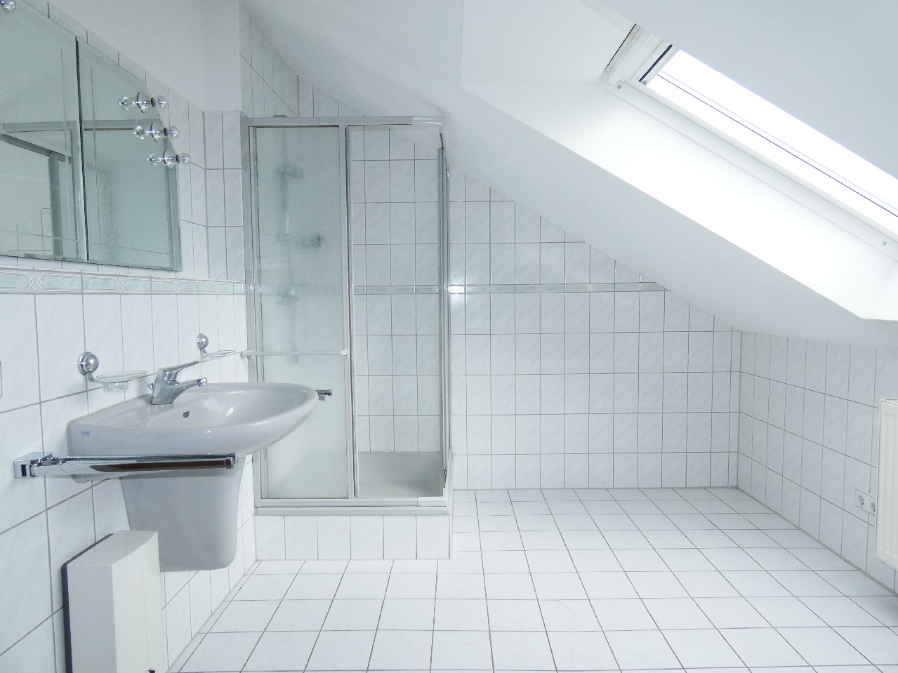* Badezimmer: Dusche, Waschbecken, WC, Anschlüsse für Waschmaschine und Trockner,