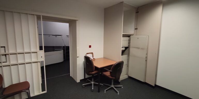 Die hier angebotene, ehemalige Bankfiliale bietet auf das Erd- und Untergeschoss verteilt insgesamt 257 m² Nutzfläche. Durch den langjährigen Vormieter, die Volksbank Remscheid, wurde die Fläche fortlaufend instand gehalten und präsentiert sich in einem gepflegten Zustand. Die Hauptfläche befindet sich im früheren Service und Kundenbereich, darüber hinaus stehen noch zwei abgetrennte Büros im EG zur Verfügung. Eine kleine Teeküche sowie zwei WC´s runden das Angebot ab. Im Untergeschoss mit dem Zugang zur Tiefgarage befinden sich noch der alte Tresor- sowie ein Archivraum, welche sich zu Lagerzwecken eignen.
