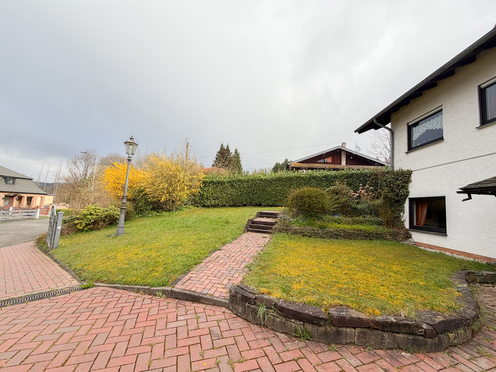 Das Herzstück des Anwesens bildet der großzügige Garten, der vielfältige Nutzungsmöglichkeiten eröffnet und ein angenehmes Wohnumfeld schafft. Terrasse und Balkon erweitern den Wohnraum harmonisch ins Freie.