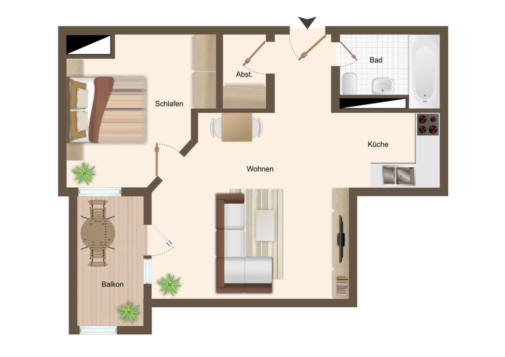 Zwei-Raum-Apartment mit insgesamt ca. 43m² Wfl.