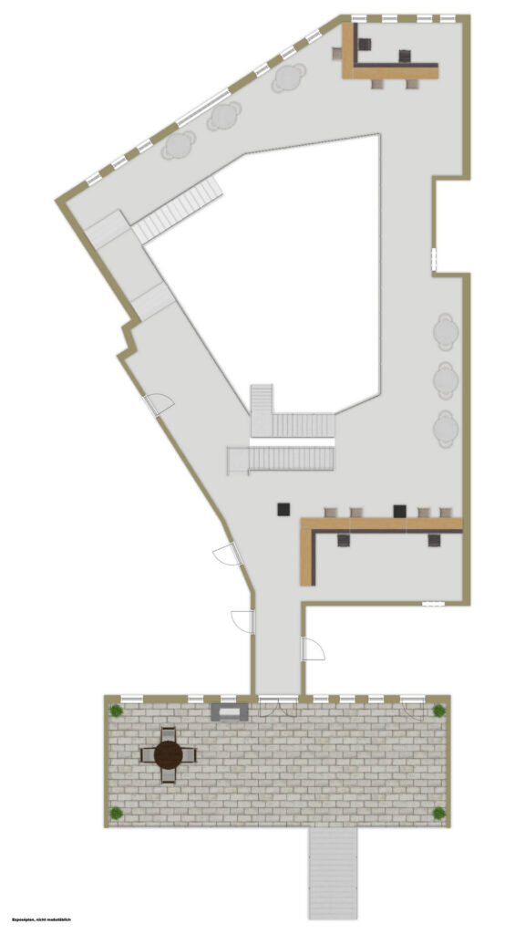 Das Hauptgebäude überzeugt durch seine solide, massiv anmutende Bauweise und erstreckt sich über zwei weitläufige Ebenen mit einer Gesamtnutzfläche von beeindruckenden ca. 1.221 m². Die Grundrisse sind geprägt von Großzügigkeit und bieten eine hohe Variabilität in der Gestaltung. Während das Erdgeschoss durch seine offenen Flächen und die ehemalige Gastronomie-Infrastruktur eine ideale Basis für moderne Event-Locations, repräsentative Showrooms oder großflächige Ateliers bietet, eröffnet das Obergeschoss zusätzliche Potenziale. Die vorhandene Bausubstanz dient dabei als Leinwand für eine umfassende Sanierung, bei der moderne Designelemente mit dem industriellen Charme des Baujahres verschmolzen werden können.