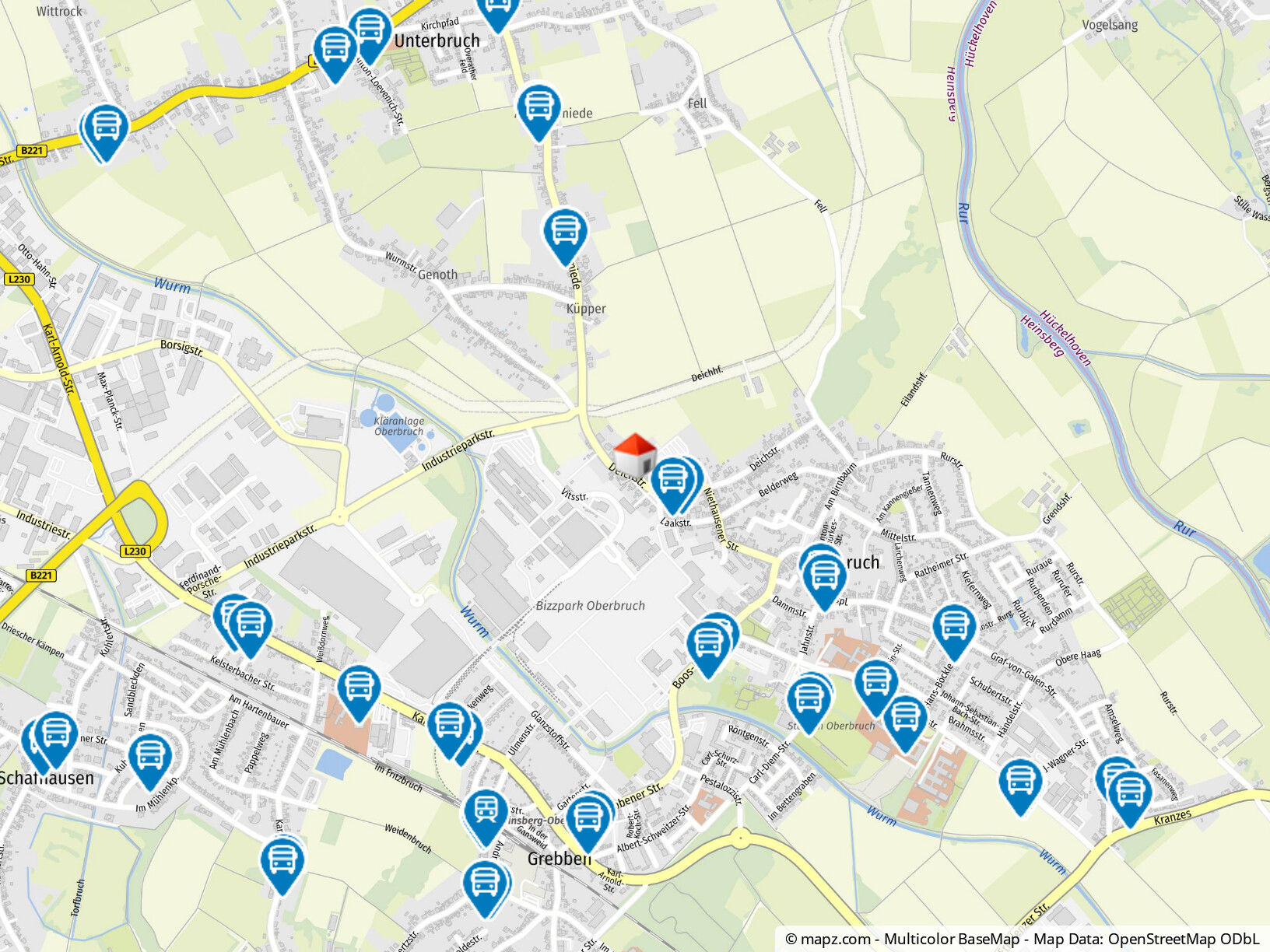 Diese Immobilie befindet sich in einem etablierten Umfeld im Heinsberger Stadtteil Oberbruch. Die Lage besticht durch eine hervorragende Balance zwischen einem professionellen, ruhigen Arbeitsumfeld und einer erstklassigen infrastrukturellen Anbindung.