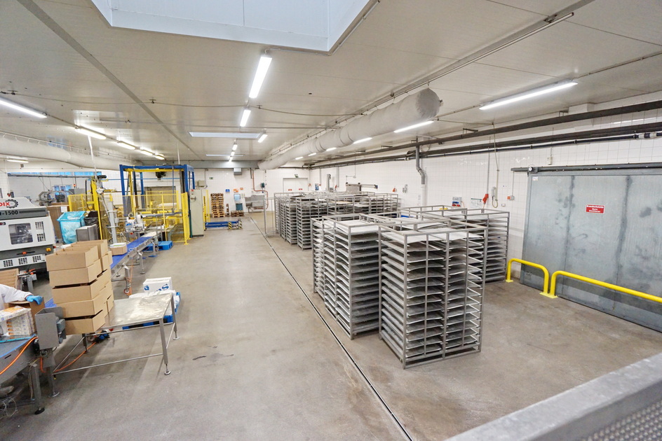 Die Gewerbehalle dient aktuell als Produktionshalle für Backwaren. Die technische Ausstattung entspricht den heutigen Anforderungen einer modernen Gewerbehalle, z.B. RWA-Anlage, Raumluftanlage, Starkstrom, Schnelllauftore, Hochregallager, etc.
