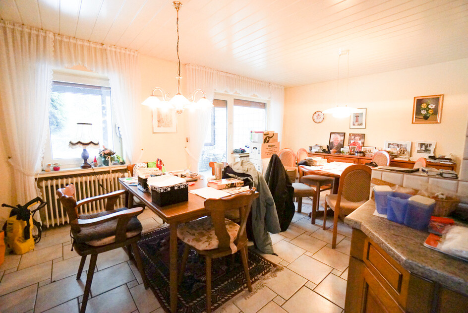 Im Obergeschoss befinden sich drei gut geschnittene Zimmer, woraus auch einfach vier Schlafräume entstehen könnten. Hier ist ein Gäste-WC auf dem Flur installiert. Die Immobilie wurde teilweise als Zweifamilienhaus genutzt, weshalb eine Küche eingebaut wurde. Durch eine Aufstockung im Jahr 1969 sind im Dachgeschoss keine Schrägen vorhanden und es wurde zusätzliche Wohnfläche gewonnen.
