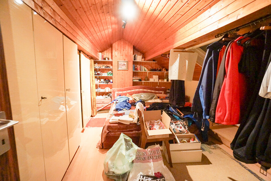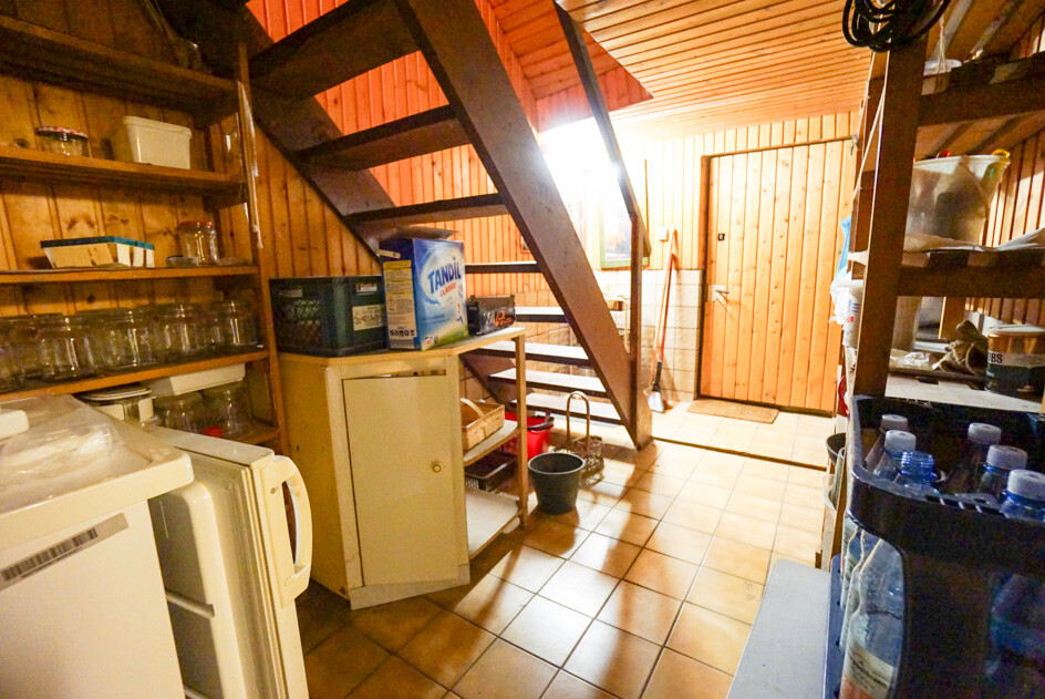 Die Nutzfläche des Dachgeschosses ist wohnlich ausgebaut. Hier befinden sich ein Zimmer und ein Badezimmer mit Wanne und Dusche. Das Kellergeschoss bietet einen praktischen Abstellraum sowie einen großen Hobbyraum.