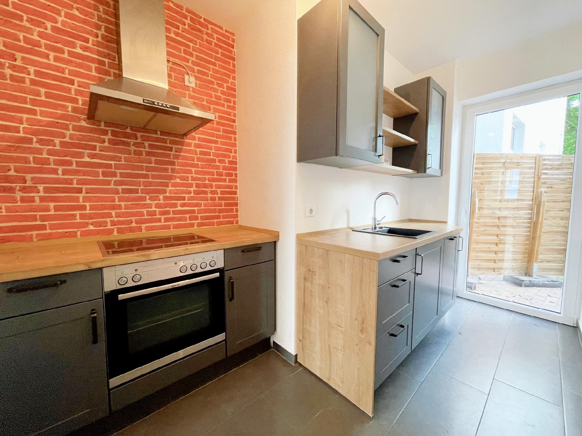 Beim Betreten der Wohnung werden Sie von einer langen Diele empfangen, welche Ihnen Platz für eine kleine Garderobe bietet. Zu Ihrer rechten gelangen Sie in das gemütliche Wohnzimmer mit angrenzendem Kinder- oder Arbeitszimmer. Geradeaus finden Sie das großzügige Schlafzimmer mit Blick auf die eigene Terrasse. Links liegen das Tageslichtbad sowie die Küche. In der Küche steht Ihnen eine moderne Einbauküche zur Verfügung. Außerdem gelangen Sie von hier aus auf Ihre eigene Terrasse mit südwestlicher Ausrichtung, wo sich ruhige Stunden in der Sonne verbringen lassen.