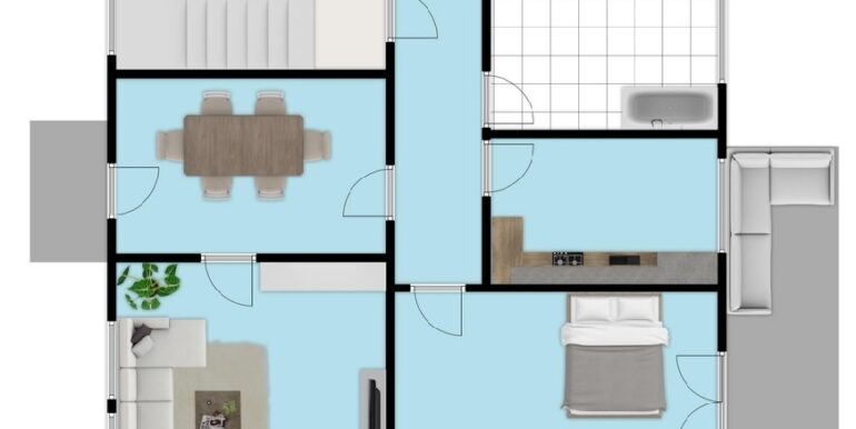 Bereits beim Betreten der Wohnung überzeugt der durchdachte Grundriss. Der zentrale Flur ermöglicht den Zugang zu allen Wohnräumen und unterstreicht den funktionalen Charakter der Immobilie.