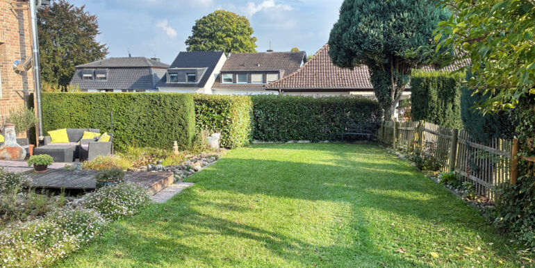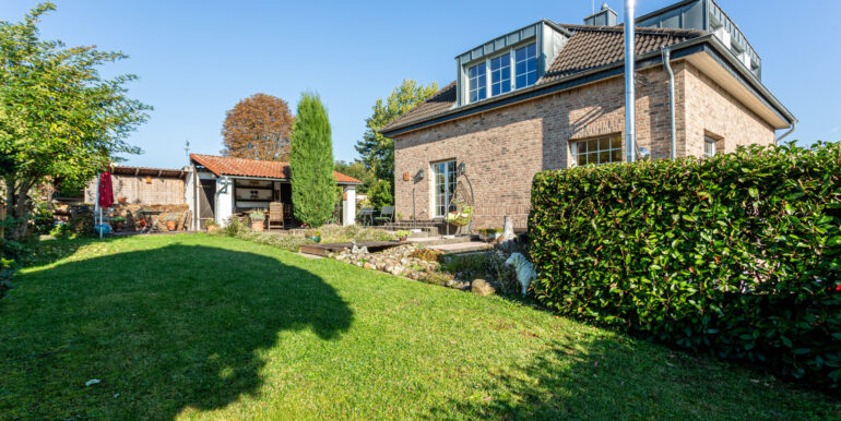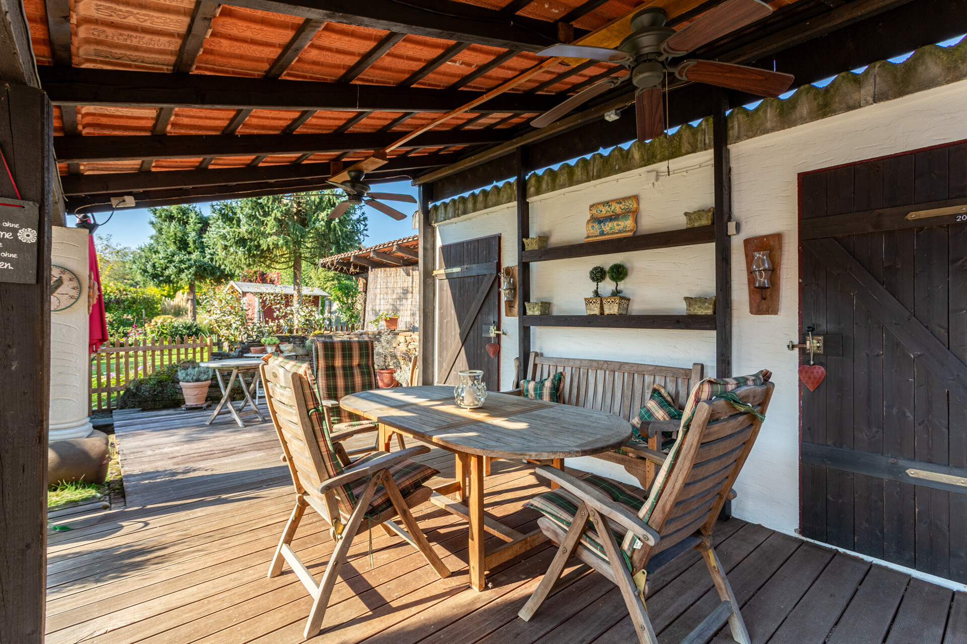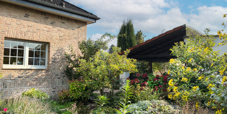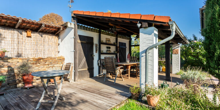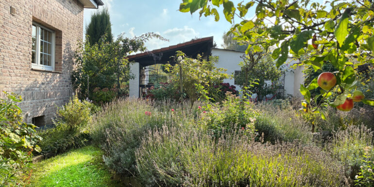 Der Garten ist ein echtes Highlight dieser Immobilie. Er wurde aufwendig und liebevoll angelegt. Im Sommer gibt es Kräuter, viele Rosen und Lavendel. Außerdem noch Apfelbäume. Der Garten ist mit Strom- und Wasserleitungen sowie drei Bodentanks und teilweise Beleuchtung versehen. Der Außenbereich bietet gleich zwei Terrassen, von denen eine überdacht ist und direkt an einen Gartenschuppen mit zwei Abstellräumen angrenzt.