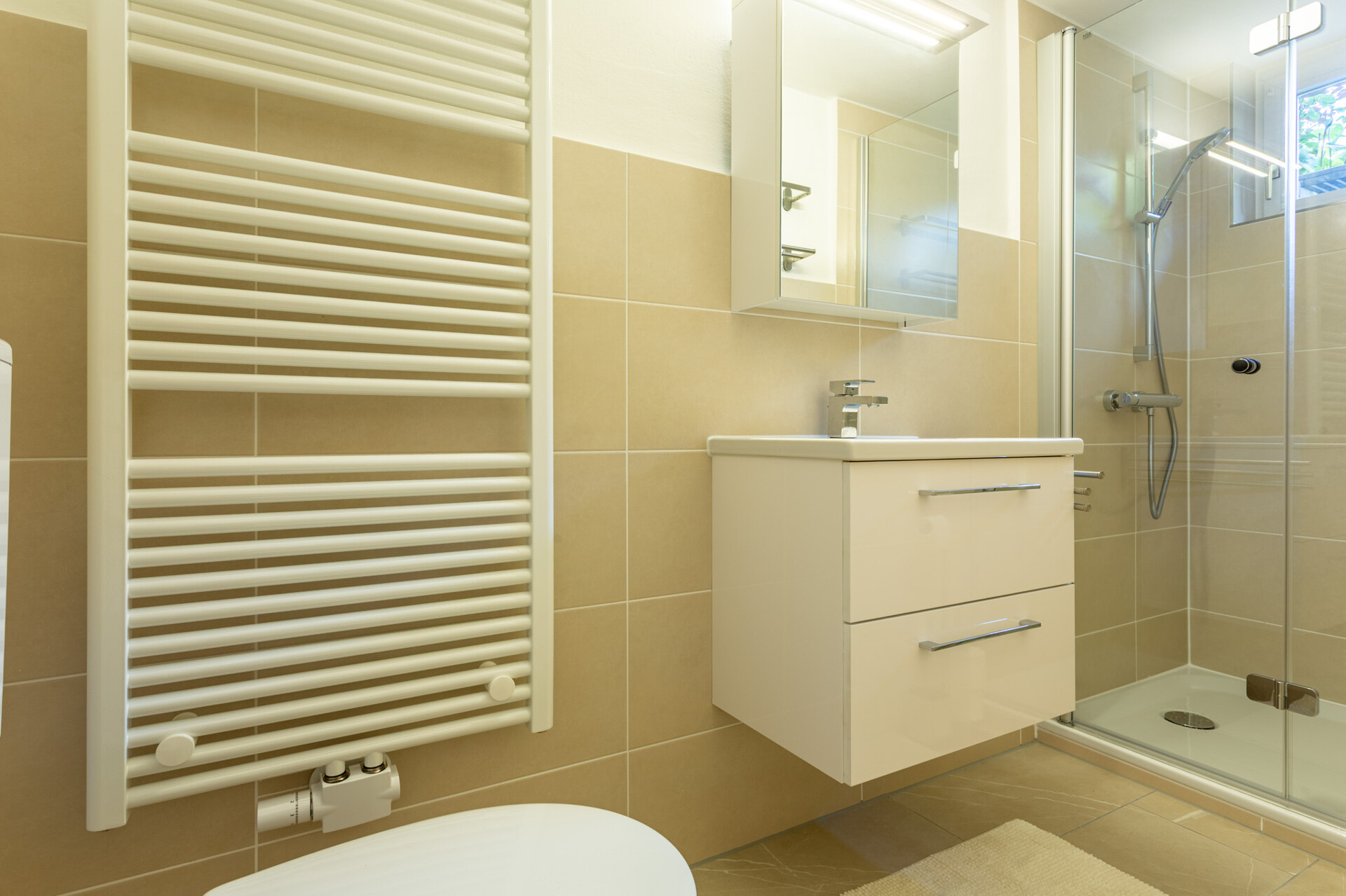 – Fußbodenheizung im Dachgeschoss, Radiatoren im EG und UG