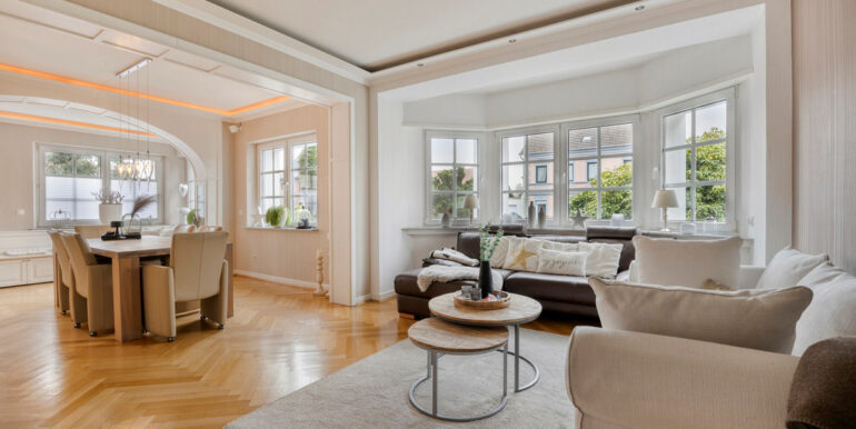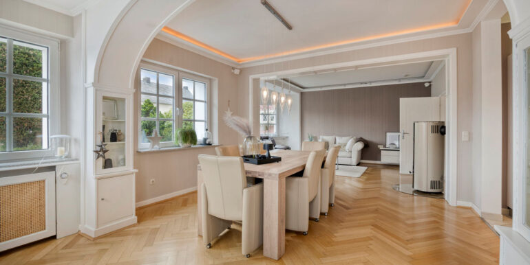 Das weitläufige Grundstück mit einer Größe von 1.120 m² bietet darüber hinaus ein hohes Maß an Privatsphäre, Großzügigkeit und Gestaltungsspielraum. Insgesamt handelt es sich um ein Anwesen mit besonderer Ausstrahlung, das architektonische Eigenständigkeit, solide Modernisierung und ein großzügiges Grundstück auf harmonische Weise vereint.