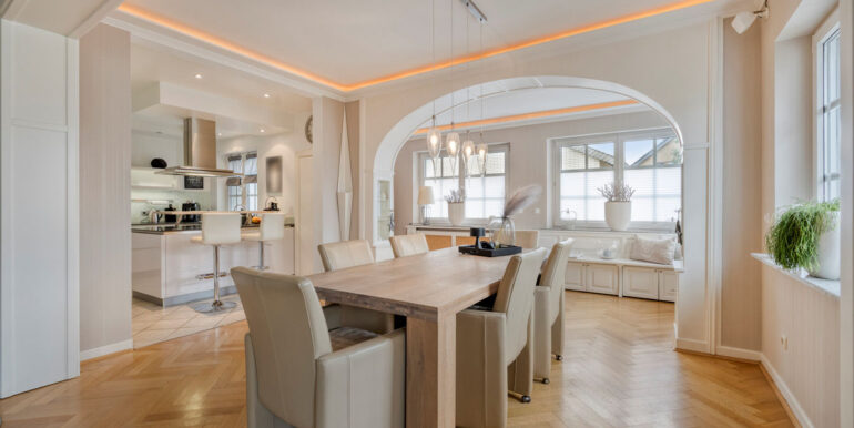 Im Zuge der umfassenden Modernisierung ab dem Jahr 2002 wurde die Immobilie technisch auf einen zeitgemäßen Stand gebracht. Sämtliche Wasser- und Abwasserleitungen, die Elektro- und Heiztechnik die Dachdämmung und der Innenausbau wurden erneuert, ebenso die komplette Haustechnik, sodass sich das Haus heute in einem gepflegten und funktional überzeugenden Zustand präsentiert. Die Verbindung aus historischer Substanz und erneuerter Technik schafft ein Wohnambiente, das gleichermaßen stilvoll wie zukunftssicher ist.