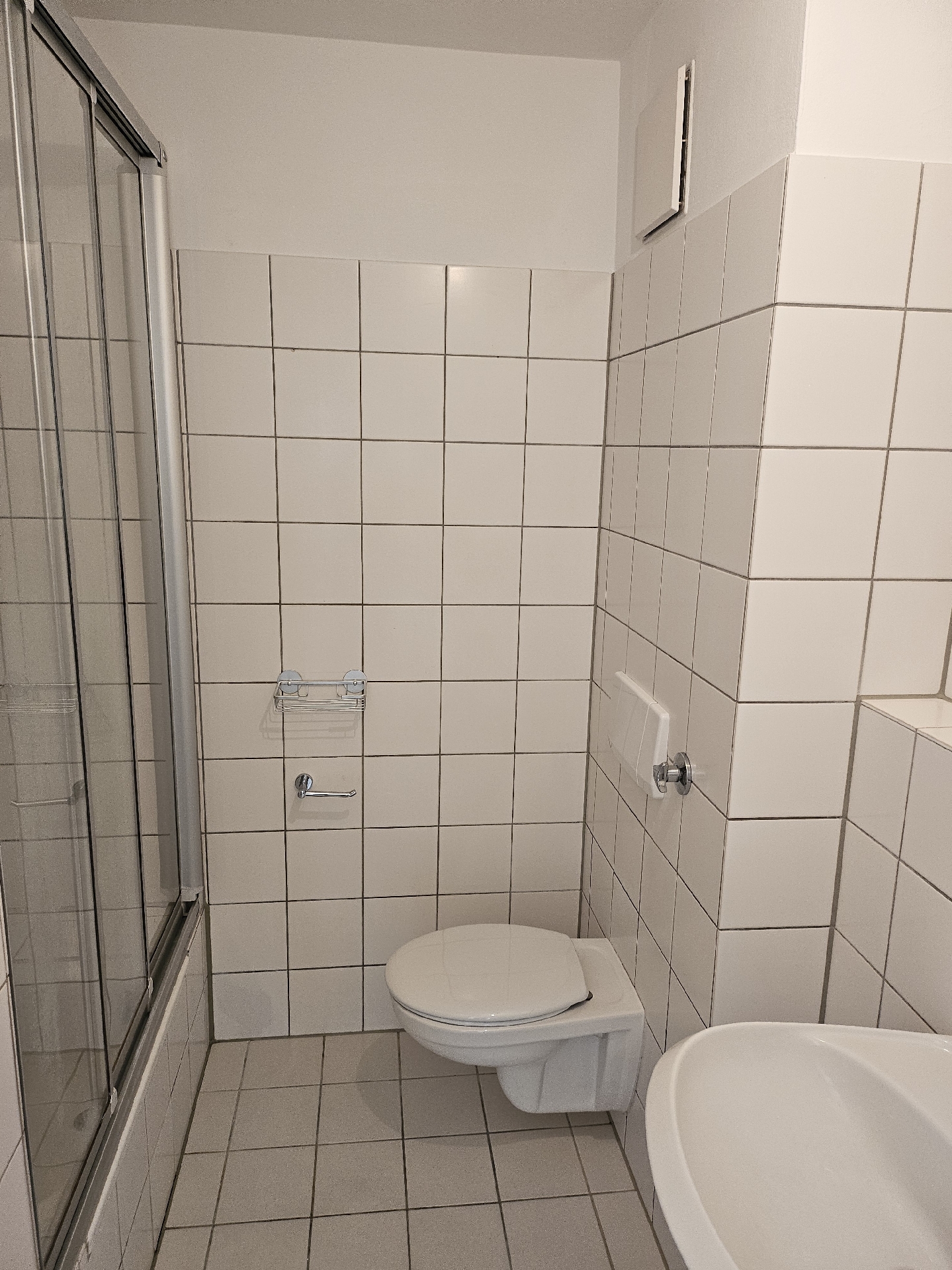 – weiß gefliestes Duschbad sowie Wannenbad
