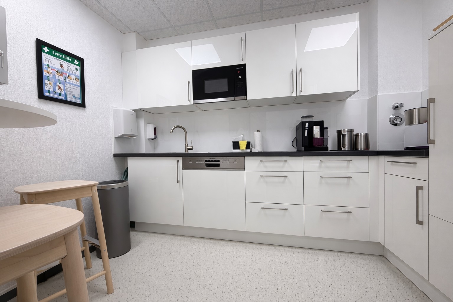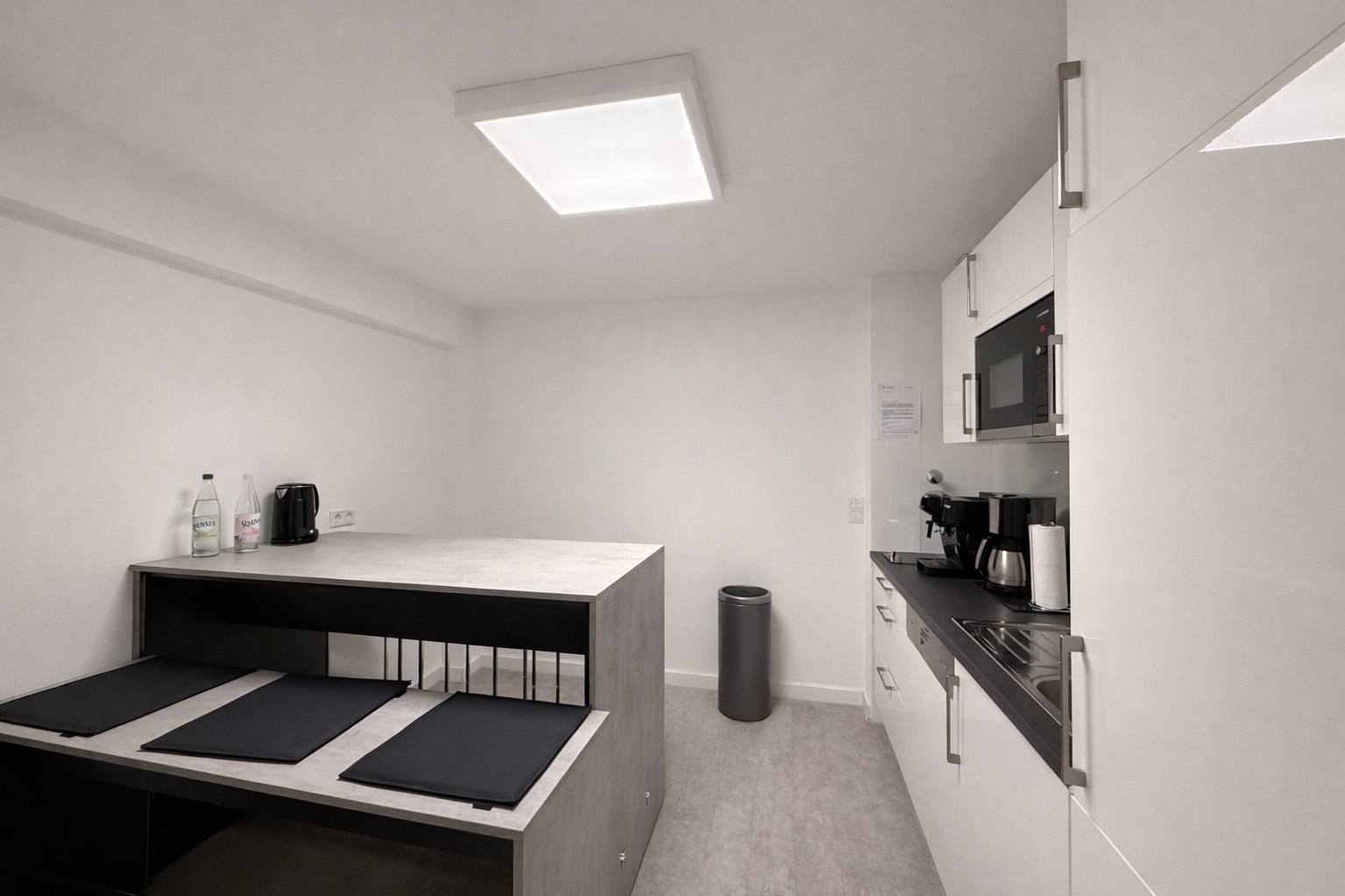 Ein besonderes Highlight sind die großzügigen Besprechungs- und Gruppenräume, die sich hervorragend für Meetings, Schulungen oder Veranstaltungen eignen. Ergänzt wird das Raumangebot durch weitere Funktionsräume, darunter Sanitäranlagen, Neben- und Lagerflächen sowie eine separate Teeküche pro Etage, die den Mitarbeitern komfortable Aufenthalts- und Pausenmöglichkeiten bieten.