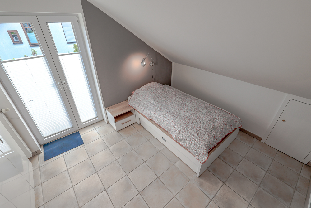 Stauraum ist in den Dachschrägen vorhanden, sodass sich jeder Quadratmeter optimal nutzen lässt.