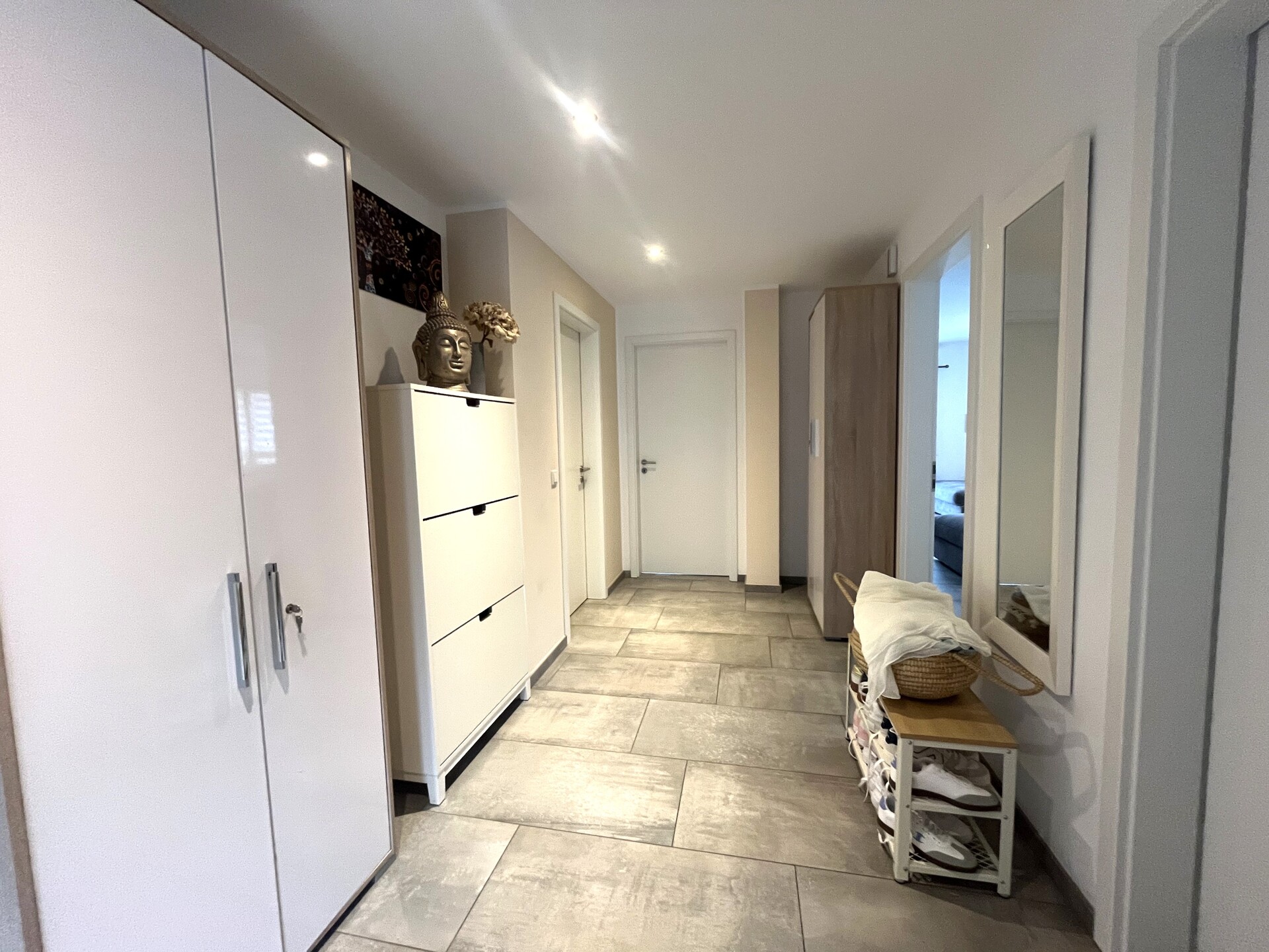Auf ca. 106 m² Wohnfläche erwartet Sie ein durchdachtes Raumkonzept mit zwei Schlafzimmern, einem lichtdurchfluteten Wohnzimmer, einer modernen Küche, einem hell gefliesten Bad mit Dusche und Wanne sowie einem separaten Gäste-WC.