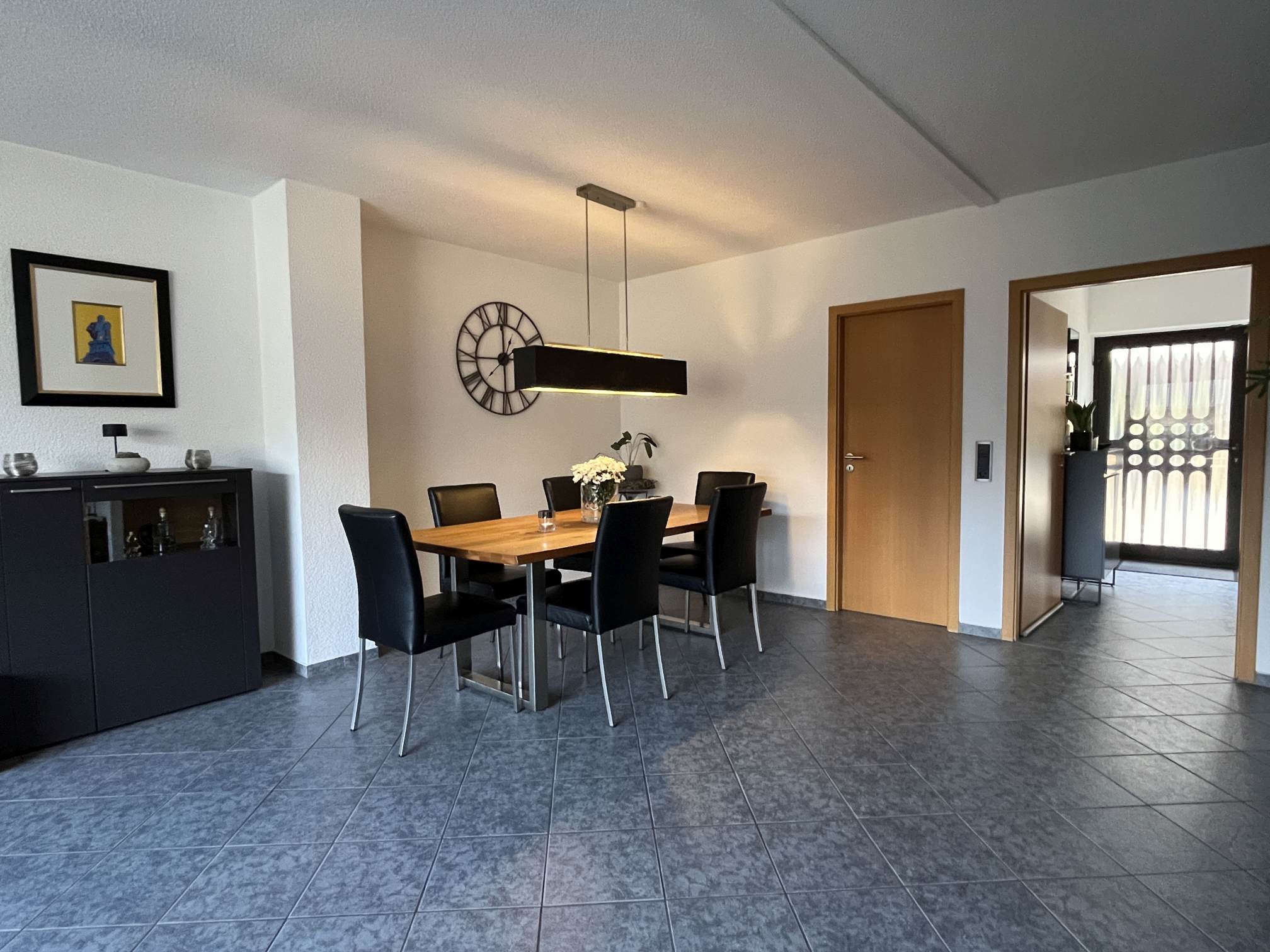 Die Ausstattung präsentiert sich in einem top-gepflegten Zustand – das Haus wurde in 2002 umfassend modernisiert, u.a. graue Bodenfliesen im EG, Laminat im OG, neue Innentüren, Wände mit Rauhfaserputz versehen, Treppenhaus modernisiert, Bad und Gäste-WC ebenfalls aus 2002. Die Beheizung erfolgt über eine Öl-Zentral-Heizung mit Warmwasseraufbereitung aus dem Baujahr 1994. Lediglich das Bad im DG und die Fenster entsprechen dem Baujahr. Die Markise über der Terrasse wurde erst in 2025 erneuert. Die schicke Einbauküche ist ebenfalls bereits im Kaufpreis enthalten.