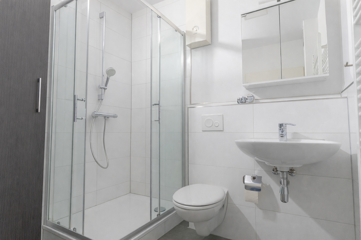 - Badausstattung: Dusche