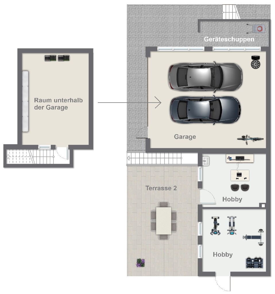 Weiterhin sind zwei wohnlich ausgebaute Hobbyräume vorhanden: ideal für Freizeit, Lager oder Werkstatt. Die vier Garagen runden das Angebot perfekt ab und machen die Immobilie für Handwerker und Selbstständige besonders interessant.