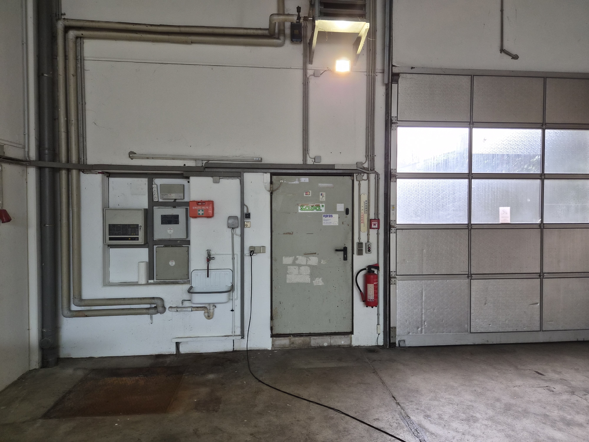 – Notausgang im hinteren Hallenbereich