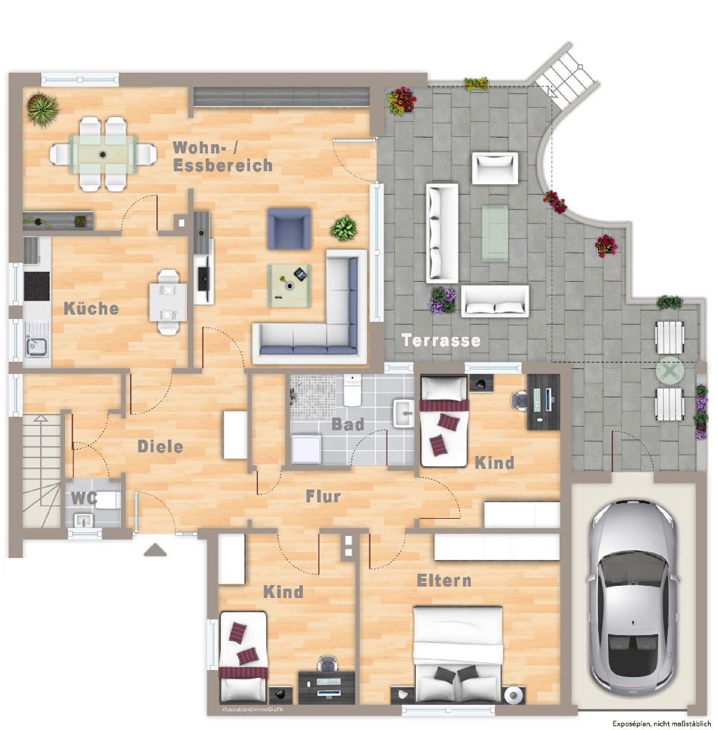 - Anzahl Außenstellplätze: 3