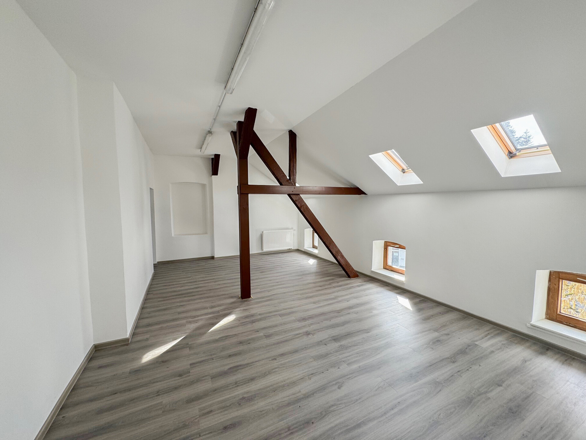 Das Obergeschoss ergänzt das Raumangebot um weitere fünf helle Räume auf ca. 101,47 m². Zusätzliches Potenzial bietet das Dachgeschoss (ca. 118,06 m²) Abstellfläche.
