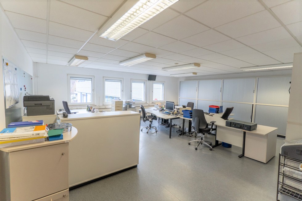 Ein besonderer Vorteil der Immobilie ist die hohe Flexibilität der Raumstruktur. Durch das vorhandene Ständerwerk lässt sich die Aufteilung der Räume bei Bedarf individuell anpassen, sodass sowohl offene Arbeitsbereiche als auch zusätzliche Einzel-/ oder Großraumbüros realisierbar sind.
