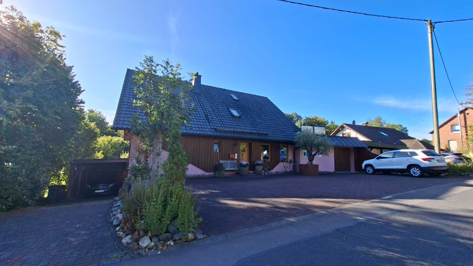 Das parkähnliche Grundstück bietet viel Privatsphäre, flexible Gestaltungsmöglichkeiten sowie großzügige Stellplätze am Haus und im Carport.