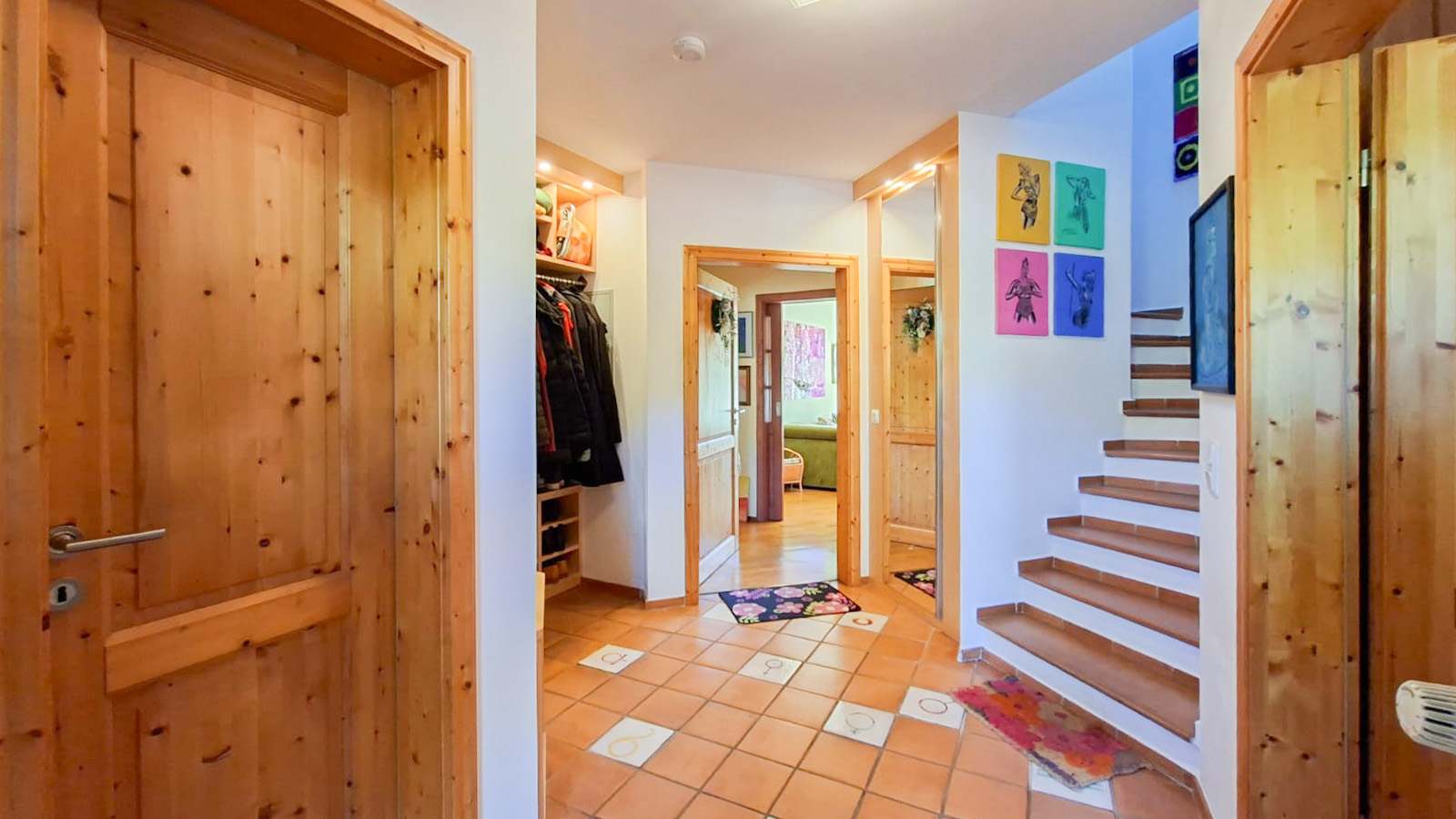 Das Herzstück des Erdgeschosses ist die lichtdurchflutete Wohnküche mit direktem Balkonzugang, die über eine interne Treppe elegant mit dem darunterliegenden, großflächigen Wohnbereich verbunden ist. Durch die vorteilhafte Hanglage in Kombination mit einem separaten Zugang bietet das Untergeschoss ideale Voraussetzungen für eine eigenständige Einliegerwohnung. Darüber hinaus lässt sich die Fläche flexibel nutzen, etwa als Praxis für Heilpraktiker, Physiotherapie oder als ruhiger Yogaraum in naturnaher Umgebung. Bodentiefe Fenster ermöglichen dabei einen direkten Zugang zur Terrasse sowie in den weitläufigen Garten. Das Dachgeschoss erweitert das Raumangebot um drei weitere Zimmer und eine sonnige Dachterrasse, wobei die Anschlüsse für eine zusätzliche Kücheninstallation bereits vorhanden sind.