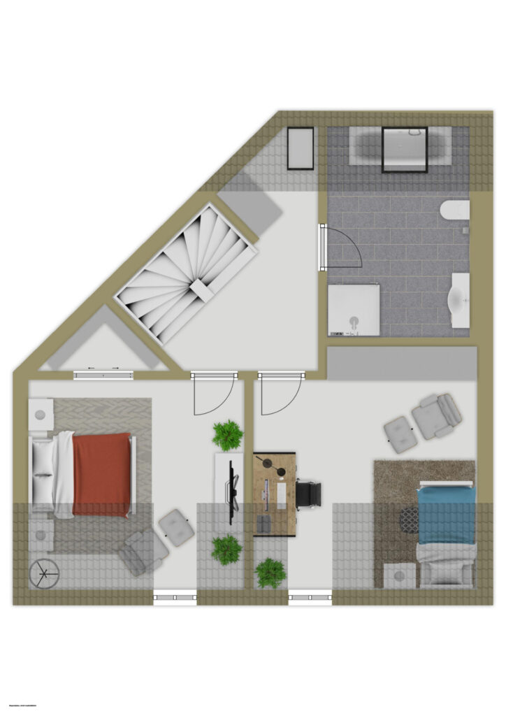 Im Obergeschoss finden sich zwei gut geschnittene Schlafzimmer. Eines davon punktet mit Klimaanlage und einer hochwertigen Lackspanndecke, die das Raumgefühl zusätzlich veredelt. Das gepflegte Badezimmer, eine gemütliche Terrasse mit kleinem Garten sowie ein eigener Stellplatz runden das Gesamtpaket ideal ab.