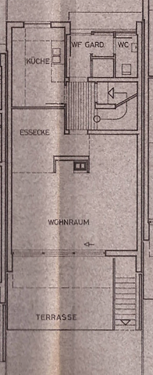 Willkommen in Ihrem zukünftigen Zuhause einem charmanten, stark renovierungsbedürftigen Mittelhaus aus dem Jahr 1978, das auf eine liebevolle Auffrischung wartet! Mit einer großzügigen Wohnfläche von 110 m² verteilt auf zwei Geschosse bietet dieses Haus genügend Platz für die ganze Familie. Im Erdgeschoss betreten Sie zunächst die einladende Küche, dem offenen Essbereich der nahtlos in das lichtdurchflutete Wohnzimmer übergeht. Hier sorgt ein romantischer Kamin für wohlige Wärme und eine gemütliche Atmosphäre an kalten Winterabenden. Von hier aus gelangen Sie direkt auf die großzügige Terrasse und in den anschließenden Garten der perfekte Ort, um die warmen Sonnenstrahlen zu genießen oder unvergessliche Grillabende mit Freunden und Familie zu verbringen. Der Garten hat einen hinteren Zugang. Ein praktisches Gäste-WC rundet das Erdgeschoss ab und sorgt für zusätzlichen Komfort. Im Obergeschoss erwarten Sie drei helle Schlafzimmer, die Ihnen und Ihrer Familie ausreichend Rückzugsmöglichkeiten bieten. Jedes Zimmer hat das Potenzial, zu einem persönlichen Rückzugsort zu werden sei es als Kinderzimmer, Arbeitszimmer oder Gästezimmer. Das Badezimmer im Obergeschoss ist mit einem Fenster ausgestattet, das für frische Luft sorgt, während ein zusätzlicher Abstellraum für Stauraum sorgt. Der Keller mit direktem Zugang zum Garten bietet nicht nur Platz für Ihre Gartengeräte, sondern könnte auch in eine kreative Werkstatt oder einen Hobbyraum verwandelt werden. Eine Garage und ein Stellplatz runden das Angebot ab und sorgen für ausreichend Parkmöglichkeiten. Dieses Haus ist ein echtes Potenzial, das darauf wartet, in neuem Glanz erstrahlt zu werden. Lassen Sie Ihrer Kreativität freien Lauf und gestalten Sie Ihr neues Zuhause ganz nach Ihren Wünschen!