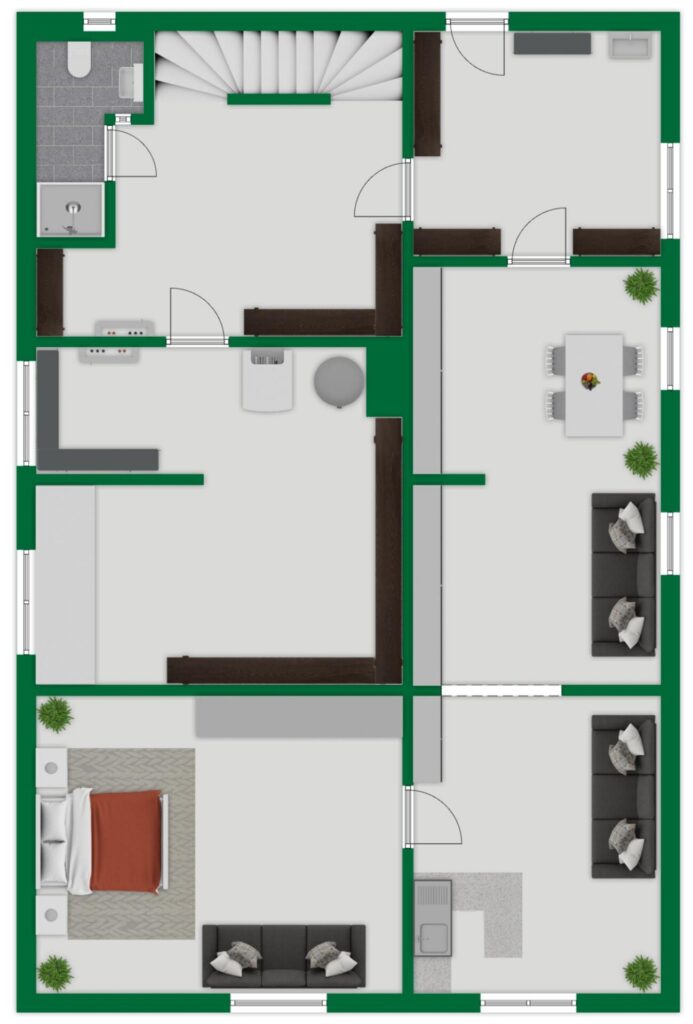 Weitere Nutzflächen stehen im Kellergeschoss und in Nebenräumen zur Verfügung und bieten ausreichend Stauraum sowie Platz für Werkstatt oder Hobbyzwecke.