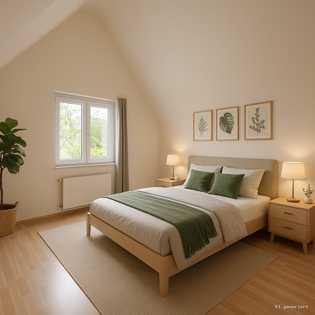 – Spitzboden: ausgebaut, heller Laminatboden, Heizkörper vorhanden