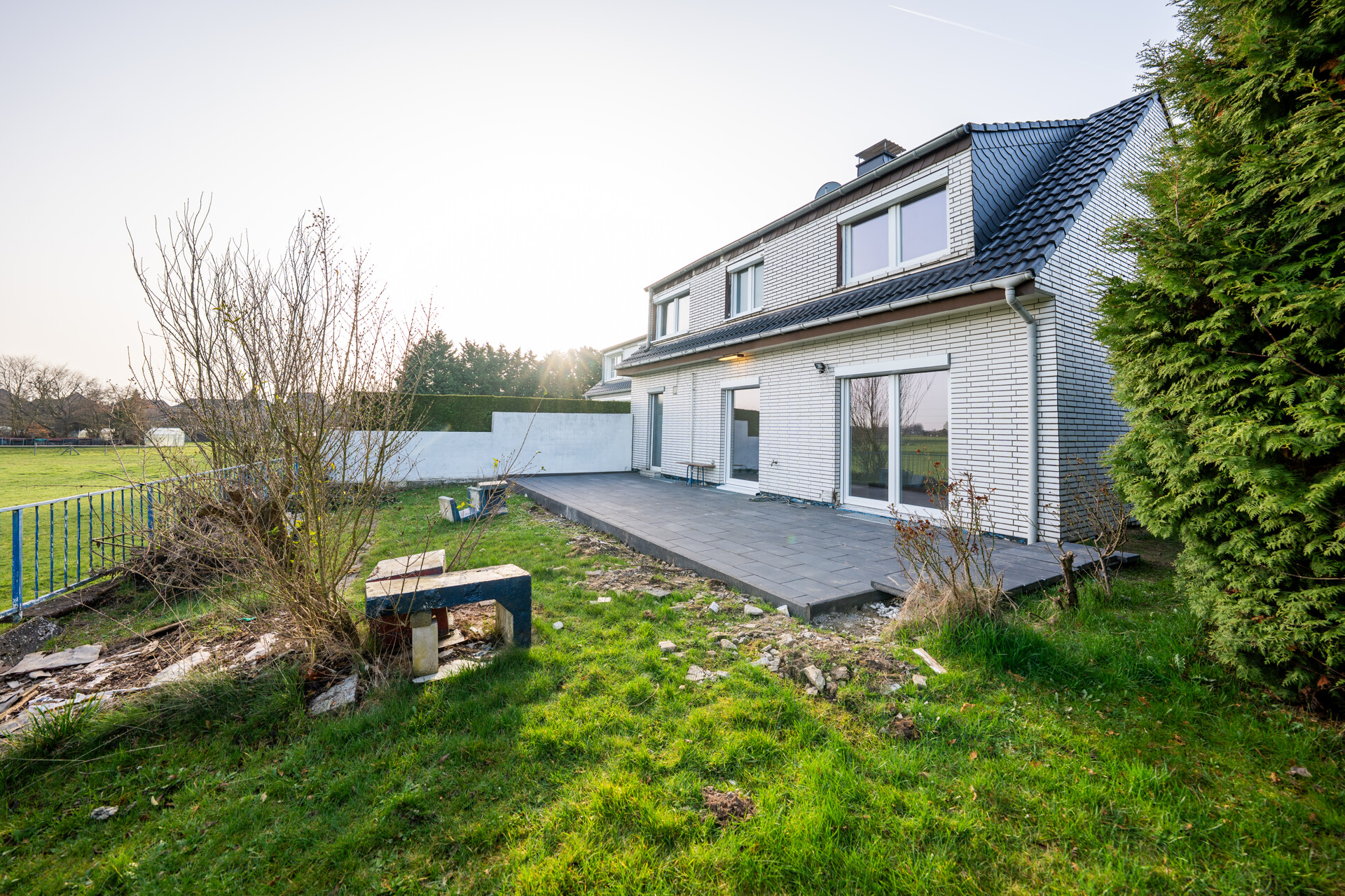 Das ca. 358 m² große Grundstück lädt mit einer Terrasse zu entspannten Stunden im Freien ein – perfekt für Frühstück in der Sonne oder gemütliche Abende.