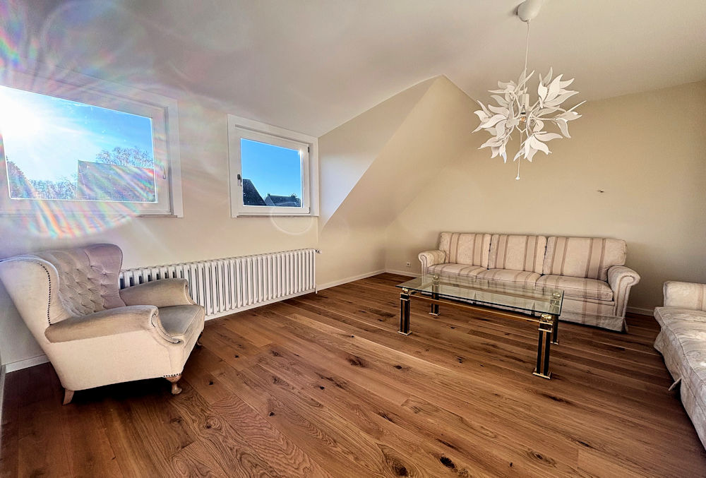 Im Obergeschoss befinden sich 3 Zimmer, die bislang als Schlaf-/Arbeitszimmer genutzt werden sowie das Tageslichtbad.