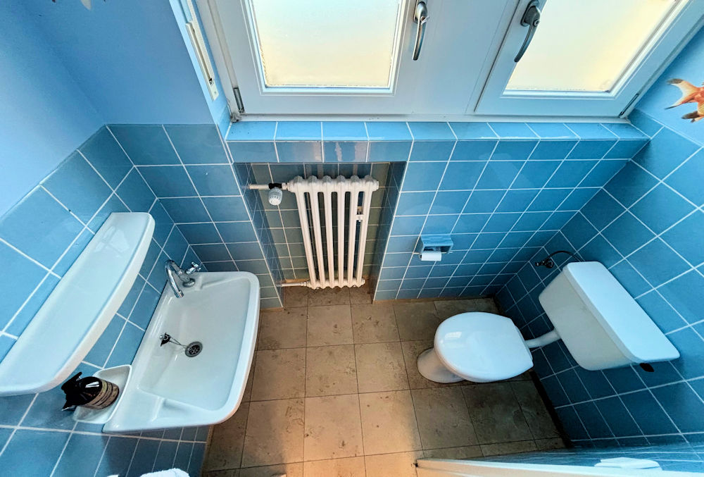 - Badausstattung: Dusche, Badewanne, Fenster im Badezimmer