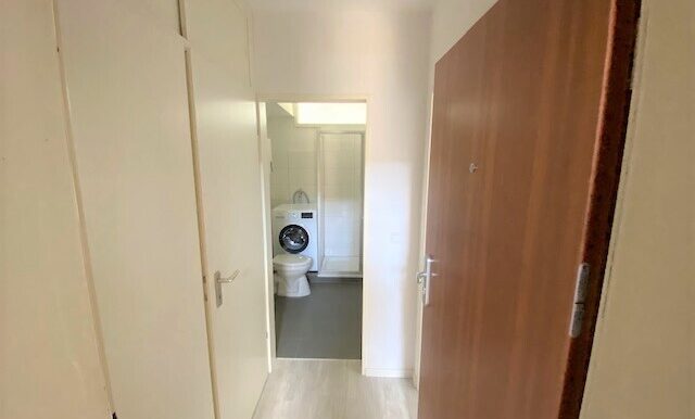 Ein Wohn-/ und Schlafbereich, ein Abstellraum, ein Badezimmer und ein abgetrennter Küchenbereich finden hier ihren Platz. Zusätzlich verfügt die Wohnung über einen Balkon, welchen Sie vom Wohn-/ und Schlafbereich aus begehen können.