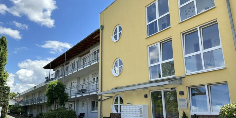 Die Senioren-Wohnung im Erdgeschoss besteht aus einem Wohnzimmer mit Zugang zur Terrasse, einem Schlafzimmer, einer Küche, einem Bad mit barrierefreier Dusche und einer Diele. Ein PKW-Stellplatz, sowie ein eigener Kellerraum, der über einen Aufzug erreichbar ist, gehören mit zum Angebot.