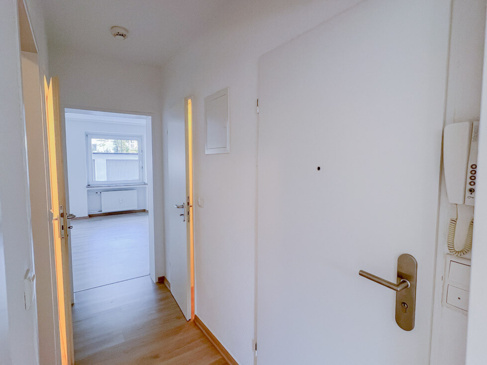 Über den gepflegten Hausflur gelangt man in die Wohnung, deren zentrale Diele alle Räume miteinander verbindet.