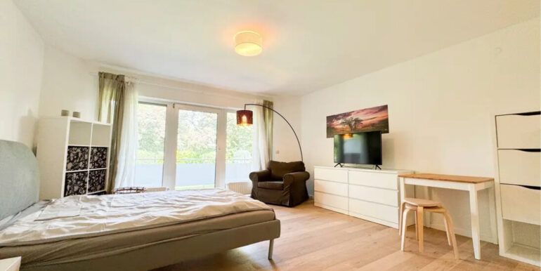 Dieses exklusive 1-Zimmer-Apartment überzeugt durch stilvolles Design, hochwertige Ausstattung und eine erstklassige Lage. Der helle, großzügige Wohnbereich ist mit edlem Eichenparkett versehen und bietet Zugang zu einem sonnigen Balkon, der zum Entspannen im Freien einlädt.