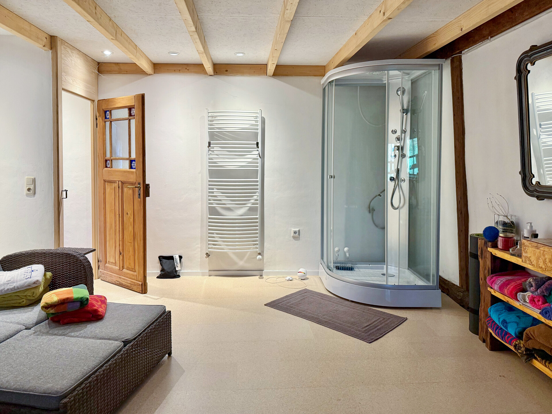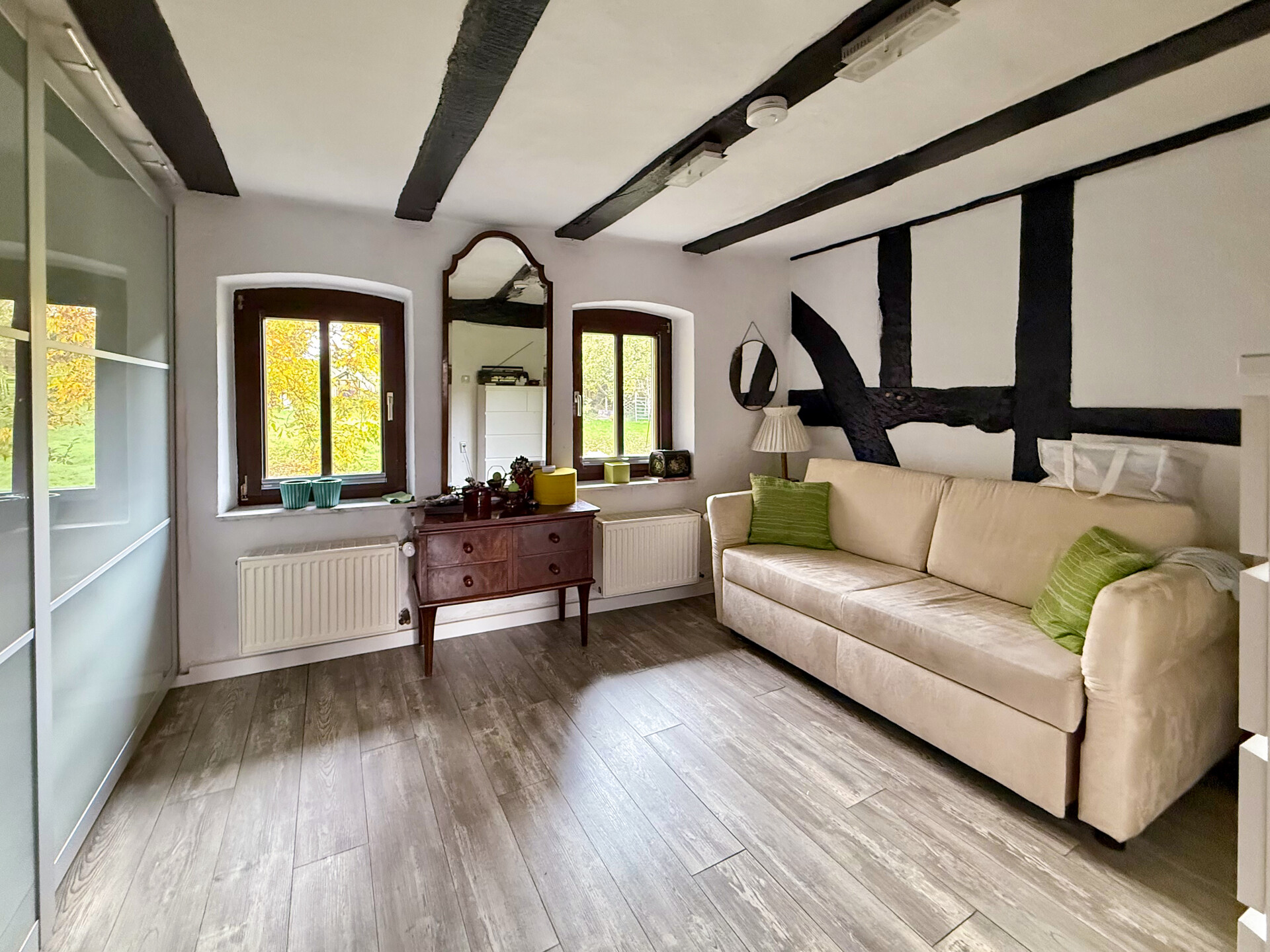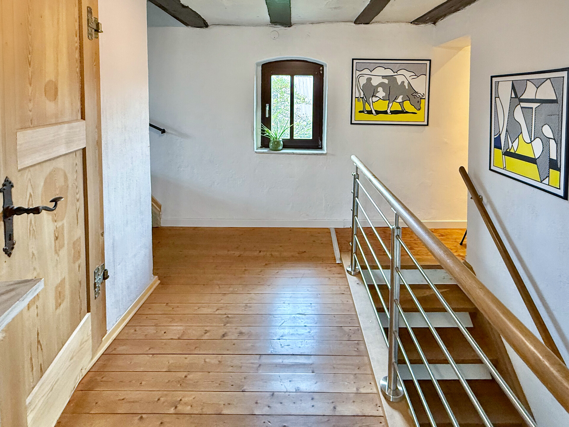 Dieses liebevoll modernisierte, ehemalige Fachwerkhaus mit Ursprung um 1800 vereint historischen Charme mit modernstem Wohnkomfort. Auf einem Grundstück von rd. 1.403 m² präsentiert sich das Anwesen – nach stetigen Sanierungen und Renovierungen von 1981 bis heute – in einem sehr guten Zustand! Im Erdgeschoss ist das Wohnen nahezu altersgerecht möglich: Neben dem gemütlichen Wohn-/Essbereich stehen eine hochwertig ausgestattete Küche, ein Wannenbad sowie ein Schlafzimmer oder Büro zur Verfügung. Im ersten Obergeschoss erwarten Sie ein eindrucksvolles Schlafzimmer mit Galerie, ein Kinderzimmer oder eine Ankleide, ein sep. WC sowie ein Wellness-/Saunaraum – perfekt für entspannte Stunden. Ein weiteres Zimmer befindet sich im Dachgeschoss. Insgesamt verfügt das Haupthaus über rd. 174 m² Wohnfläche. Ergänzt wird das Angebot durch vielfältige Nebennutzungen: Im Erdgeschoss der Scheune befinden sich Werkstatt, Heizung/Waschküche und ein Nebenraum, im Obergeschoss ein großzügiger Hobbyraum. Drei Kellerräume bieten zusätzlichen Stauraum. Zum Anwesen gehören außerdem ein Doppelcarport mit Wallbox und Abstellraum, ein Pavillon sowie das wunderschön angelegte Gartengrundstück – ein echtes Refugium, für alle, die Qualität und Gemütlichkeit schätzen!