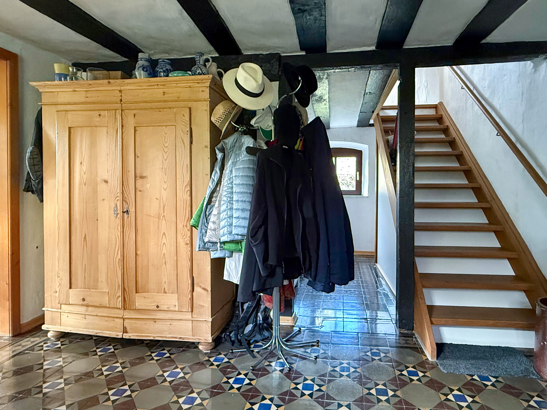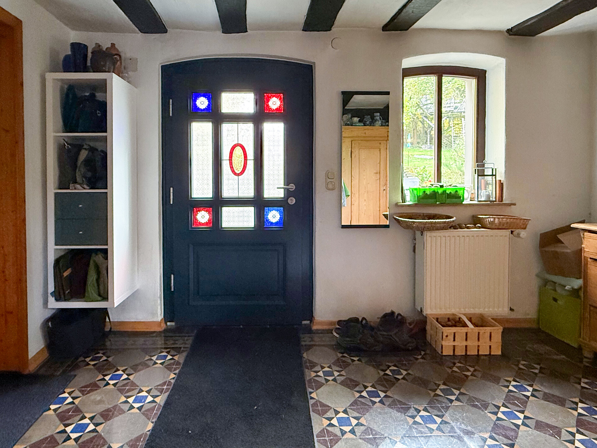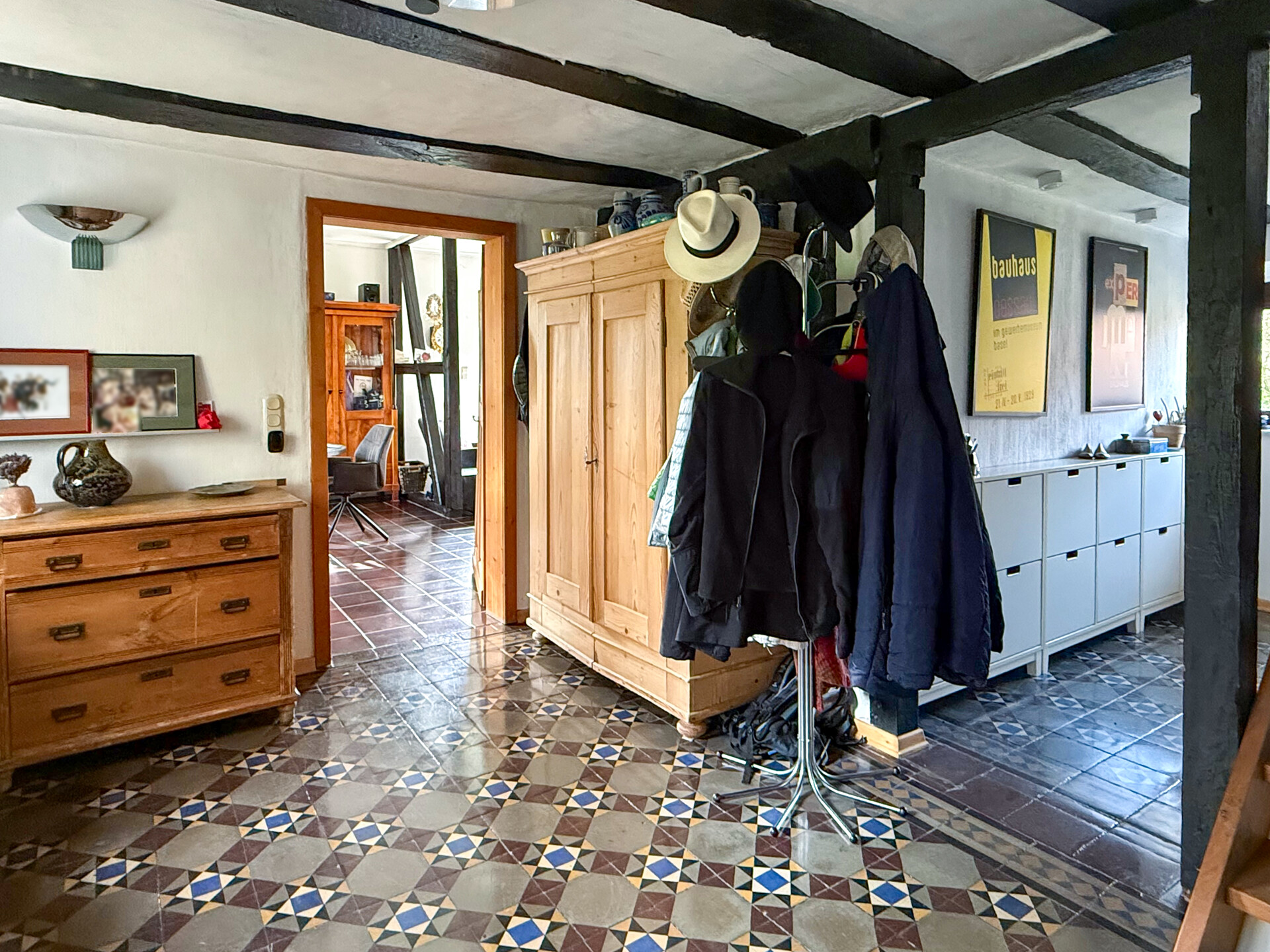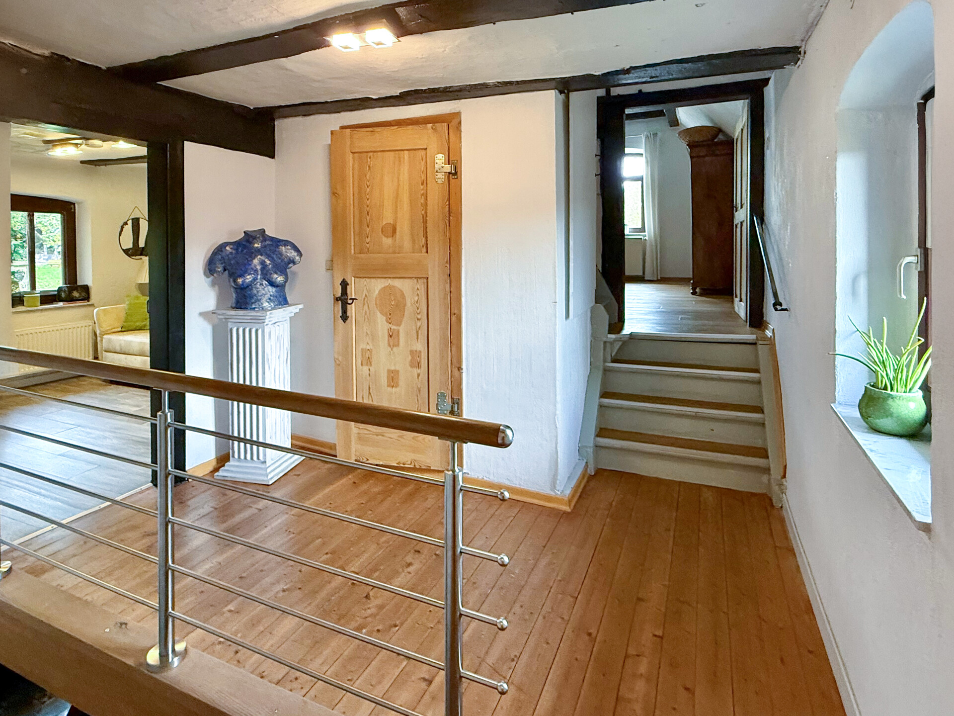 Dieses liebevoll modernisierte, ehemalige Fachwerkhaus mit Ursprung um 1800 vereint historischen Charme mit modernstem Wohnkomfort. Auf einem Grundstück von rd. 1.403 m² präsentiert sich das Anwesen – nach stetigen Sanierungen und Renovierungen von 1981 bis heute – in einem sehr guten Zustand! Im Erdgeschoss ist das Wohnen nahezu altersgerecht möglich: Neben dem gemütlichen Wohn-/Essbereich stehen eine hochwertig ausgestattete Küche, ein Wannenbad sowie ein Schlafzimmer oder Büro zur Verfügung. Im ersten Obergeschoss erwarten Sie ein eindrucksvolles Schlafzimmer mit Galerie, ein Kinderzimmer oder eine Ankleide, ein sep. WC sowie ein Wellness-/Saunaraum – perfekt für entspannte Stunden. Ein weiteres Zimmer befindet sich im Dachgeschoss. Insgesamt verfügt das Haupthaus über rd. 174 m² Wohnfläche. Ergänzt wird das Angebot durch vielfältige Nebennutzungen: Im Erdgeschoss der Scheune befinden sich Werkstatt, Heizung/Waschküche und ein Nebenraum, im Obergeschoss ein großzügiger Hobbyraum. Drei Kellerräume bieten zusätzlichen Stauraum. Zum Anwesen gehören außerdem ein Doppelcarport mit Wallbox und Abstellraum, ein Pavillon sowie das wunderschön angelegte Gartengrundstück – ein echtes Refugium, für alle, die Qualität und Gemütlichkeit schätzen!