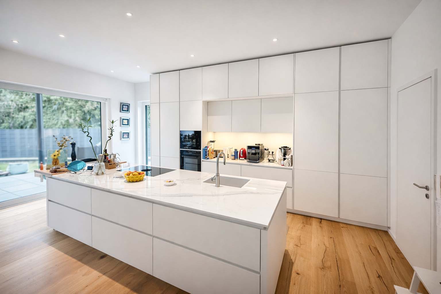 – Maßgefertigte Küche mit Geräten von Miele, Bora-Kochfeld und Quooker-System