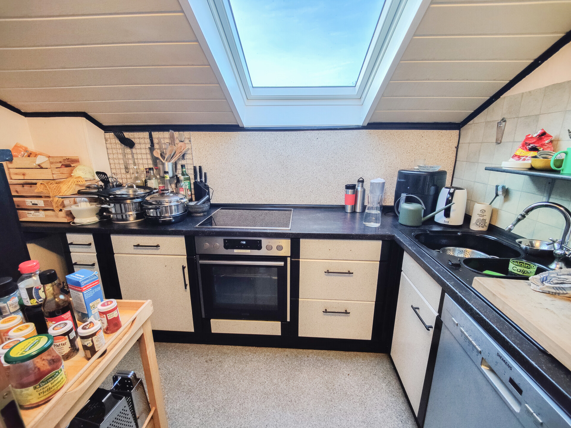 Die Fenster sind größtenteils aus Holz und stammen noch aus dem Baujahr des Hauses. In der Dachgeschosswohnung wurden jedoch 2021 neue Kunststofffenster eingebaut. Alle Fenster verfügen über eine Isolierverglasung und größtenteils auch über manuelle Rollläden.