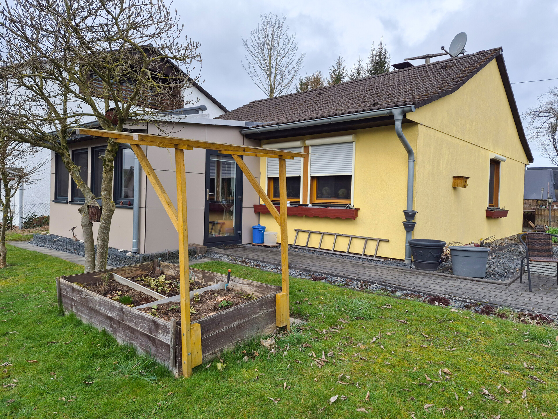 Die rund 115 m² Wohnfläche sind großzügig geschnitten und überzeugen durch eine durchdachte Raumaufteilung. Auch das ca. 635 m² große Grundstück lässt keine Wünsche offen: Der liebevoll angelegte Garten mit Beeten, Sträuchern und charmanten Gehwegen lädt zum Verweilen ein. Im hinteren Bereich bieten verschiedene Terrassen sowie ein Garten- und ein Gerätehaus vielfältige Nutzungsmöglichkeiten. Für Ihre Fahrzeuge ist bestens gesorgt: Neben einer Doppelgarage mit zwei davorliegenden Stellplätzen ist das Grundstück zusätzlich über eine zweite Einfahrt im oberen Gartenbereich zugänglich.