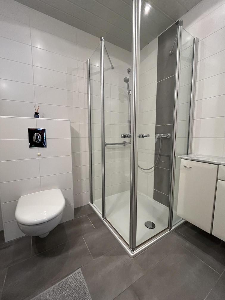 Die Wohnung ist in einem sehr gepflegten Zustand. Zur Ausstattung zählen unter anderem eine Gas-Fußbodenheizung, doppelt verglaste Kunststofffenster mit Rolläden, ein modernisiertes Badezimmer mit großer Dusche und Hänge-WC sowie Fliesen in Diele, Küche und Wohnbereich. Im Schlafzimmer liegt ein Vinylboden.