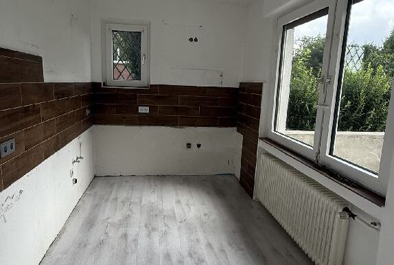 3/4 Zimmer, Schlaf- und Kindezimmer, Wohn-/Esszimmer, Küche, Bad, Terrasse, renovierungsbedürftig.