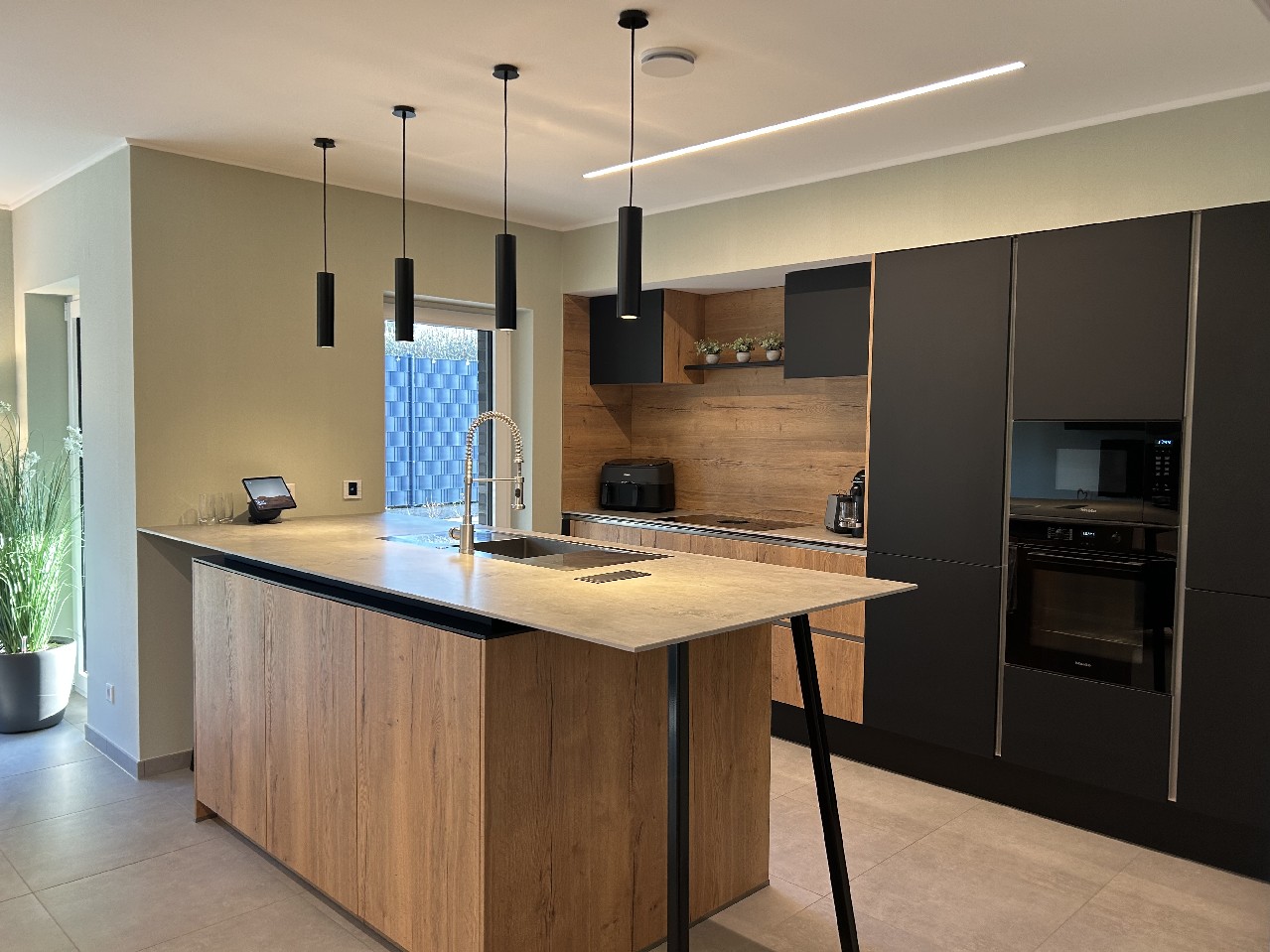 4 Zimmer, offene Wohnküche, Diele, 2 x Bad/WC, Hauswirtschaftsraum, Haustechnik, Terrasse und große Doppelgarage mit Toilette.